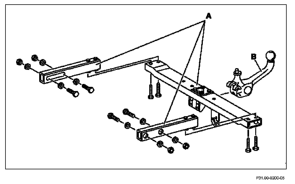 The trailer hitch is a safety-relevant part. Therefore, the crossmember and stiffening beam (or the trailer bracket on cross-country vehicles), the attaching parts and the ball neck must not be reshaped or mechanically reworked.