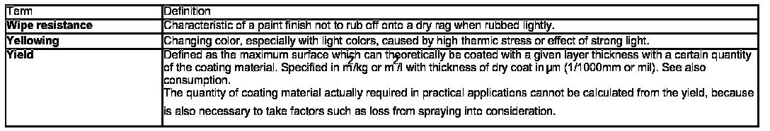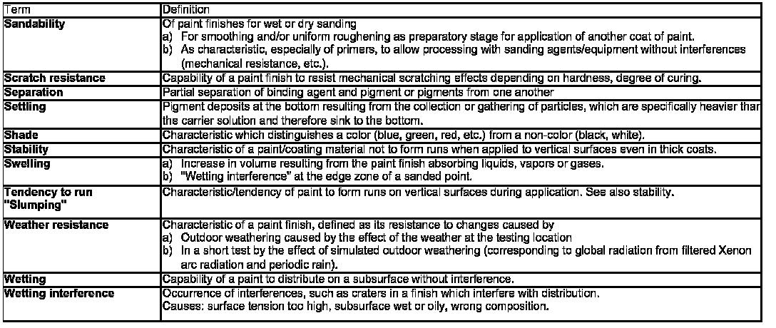 Note: This list is based on the standards DIN 55 943, DIN 55 945 and DIN 55 947.