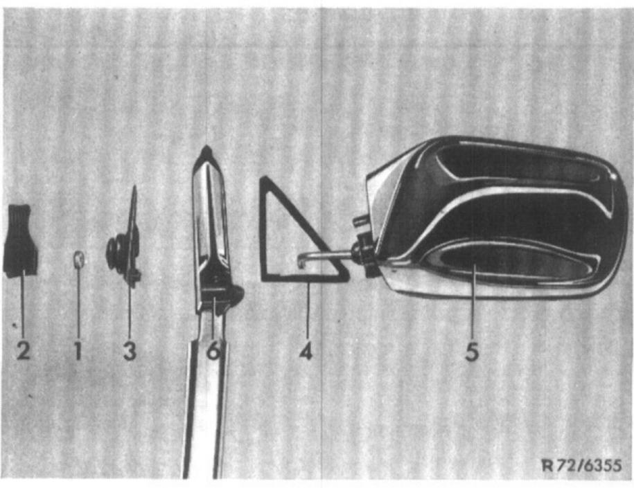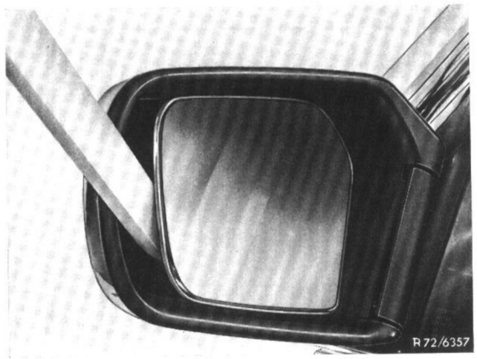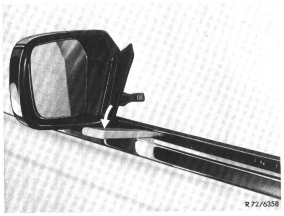 Removal and installation of outside rear view mirrorNote: If outside mirror changes its position by itself, remove mirror, lift rubber cover and tighten clamping screw on adjusting mechanism as required.