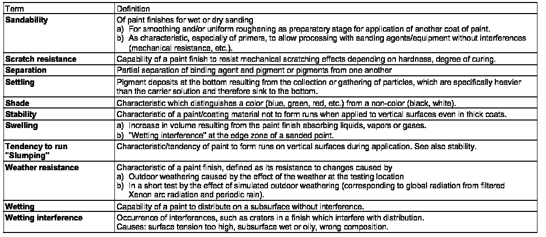 This list is based on the standards DIN 55 943, DIN 55 945 and DIN 55 947.