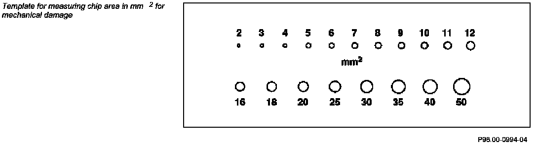 - 2 Measure and specify size of chips in sq.mm with template - see illustration below.