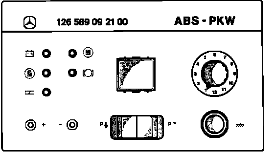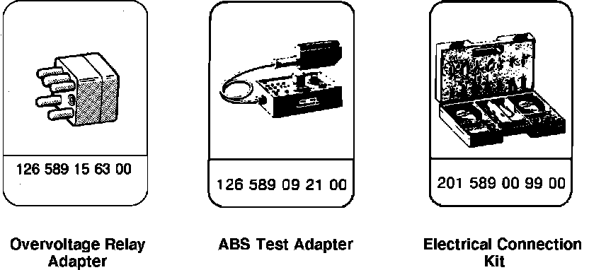 All the tests below require a volt/ohmmeter and a Bosch tester (126 589 09 21 00), Fig. 5. This permits checking the entire ABS system with the exception of the ECU. Also required is an overvoltage protection relay adapter.