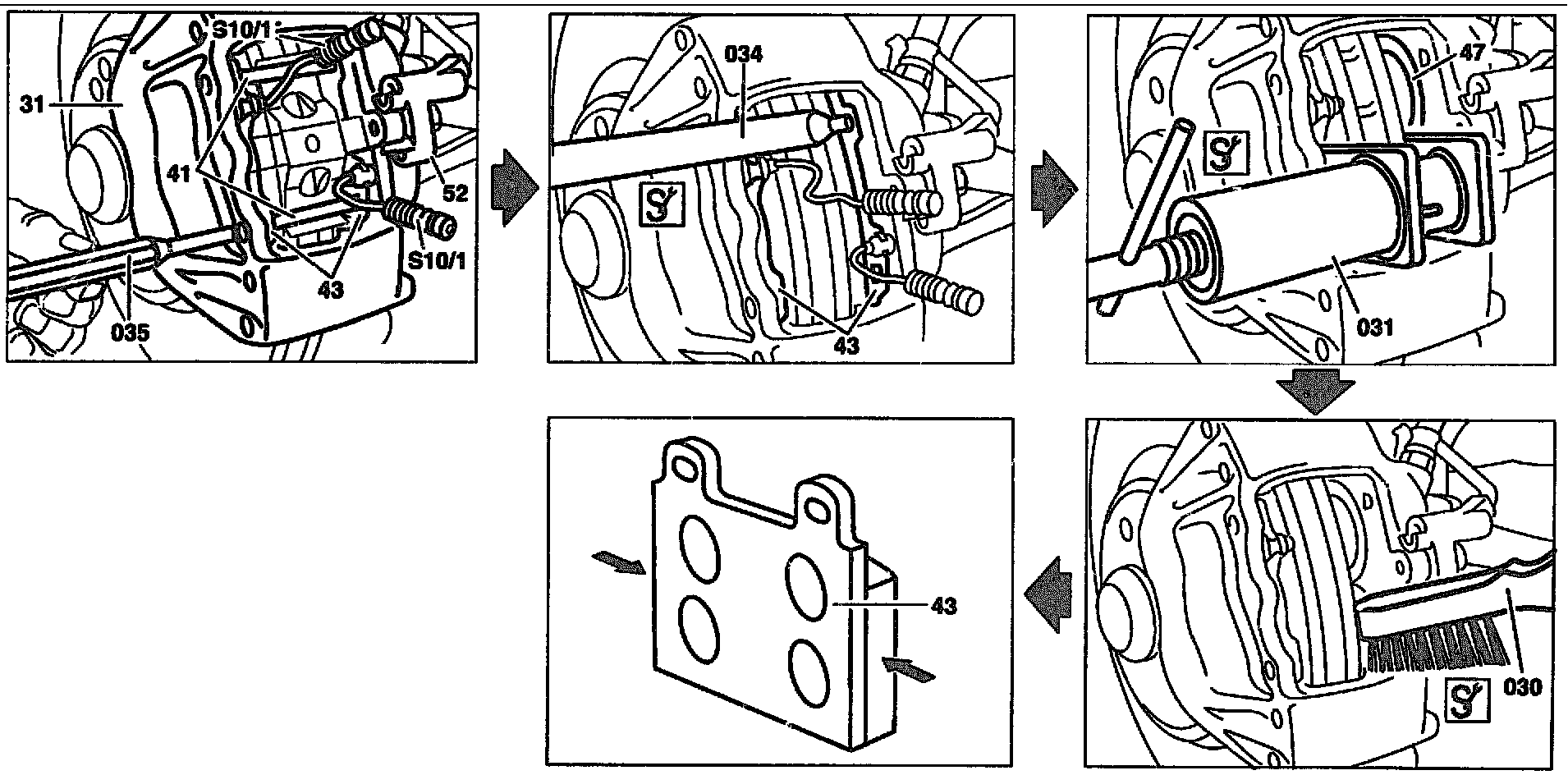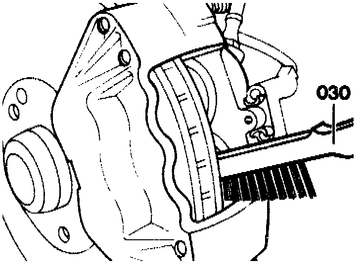 7. Using a suitable brush (030), clean caliper brake pad guide.
