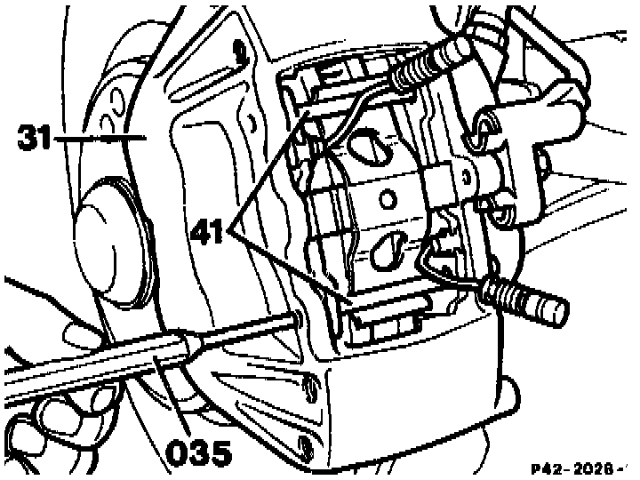 2. On Teves type caliper (shown), knock holding pins (41) from caliper assembly.