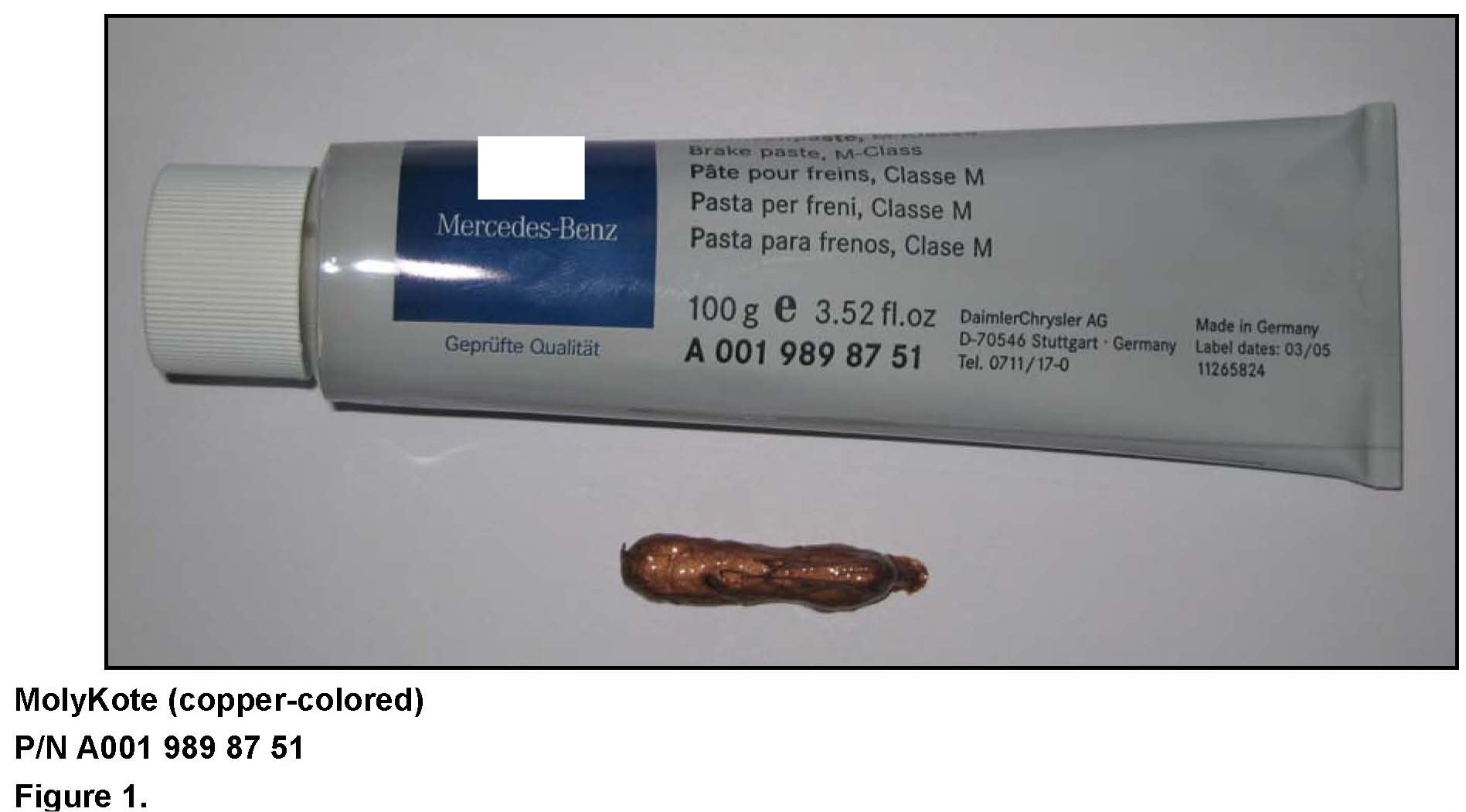 When performing repair or maintenance work on the brake system it is imperative that only the specified brake pad paste is used. Different models and brake variants may use different types of brake paste (Figures 1-3). Please reference any corresponding LIs, DTBs and or WIS document AR42.10-P-0161-01B for paste type and application location. Do not apply too much paste, only a light coating of brake paste is required when instructed.