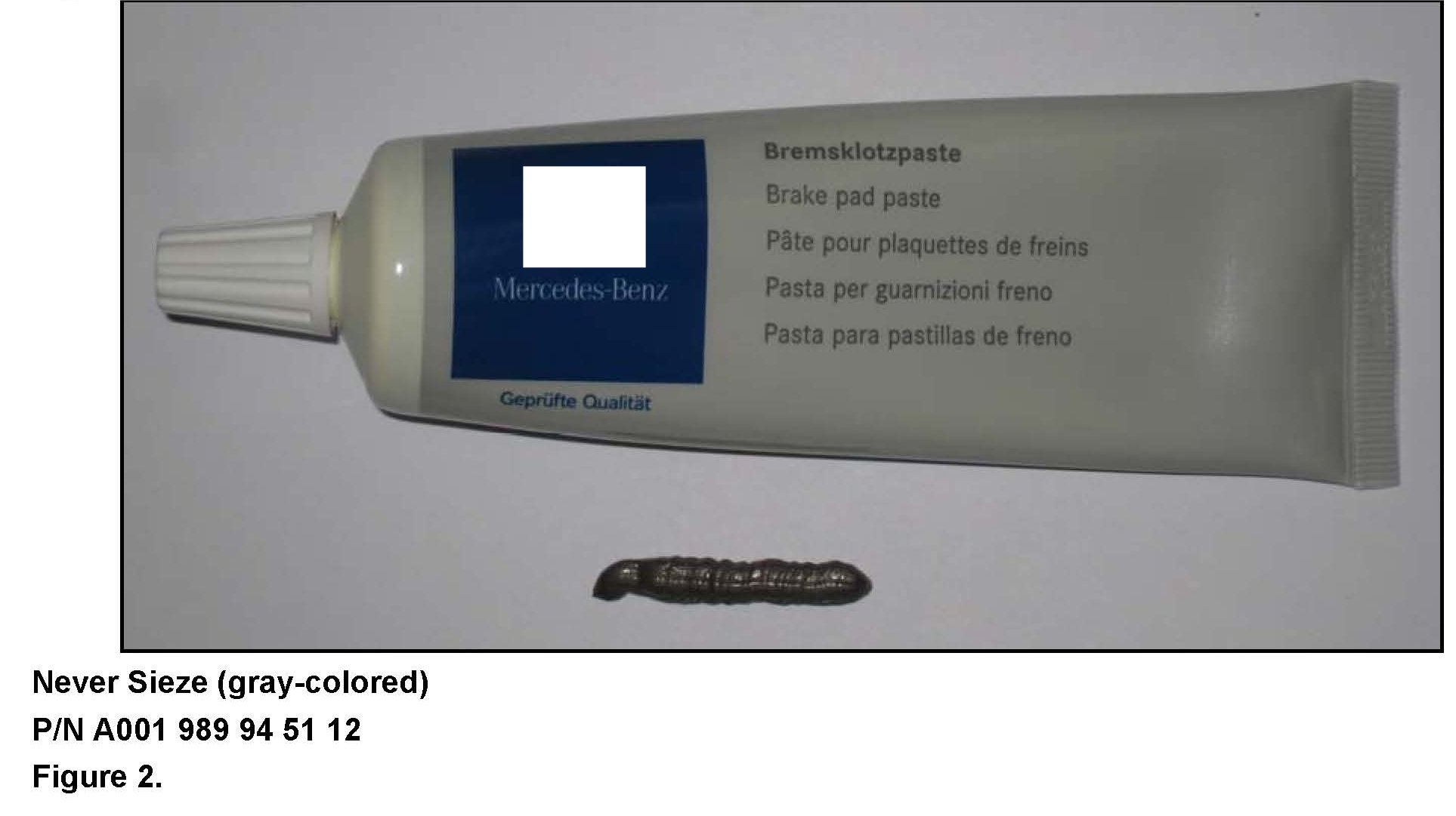 Under no circumstances should aftermarket brake paste or anti-squeal type chemicals be used on brake components. These chemicals are not approved by Mercedes-Benz, and their affect on brake components is unknown.