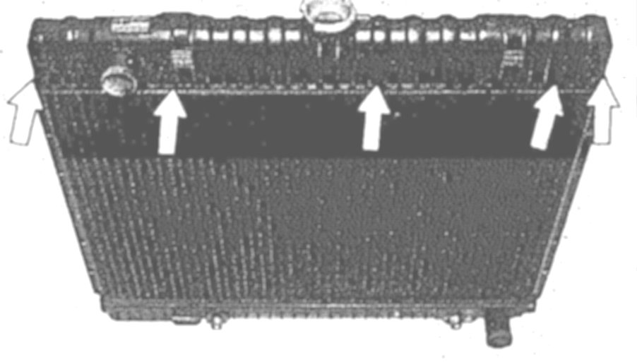 If the leaking area cannot be clearly identified in the installed condition, the radiator need not be removed. In this case it will be sufficient to drain the coolant and to pressure-test the cooling system after sealing.