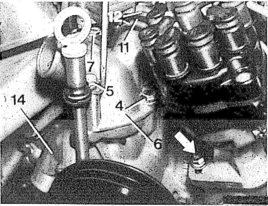 3 Engines 116.960 and 116.961 national versions (AUS) (J) (S) (USA) 1981 116.962, 116.963, 117.962, 117.963: Remove cover (14) and coolant thermostat.