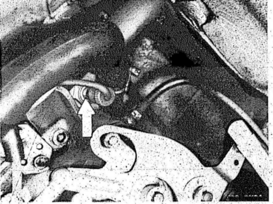 5 Disconnect vent hose on connecting pipe (arrow).