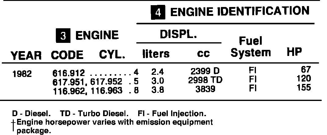 To identify an engine by the manufacturer's code, follow the four steps designated by the numbered blocks.