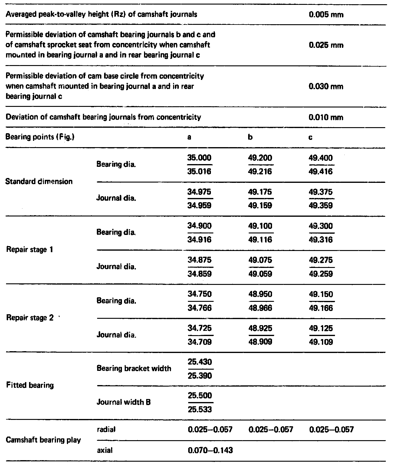 Suitable repair stage camshaft bearings are available for ground camshaft bearing journals.