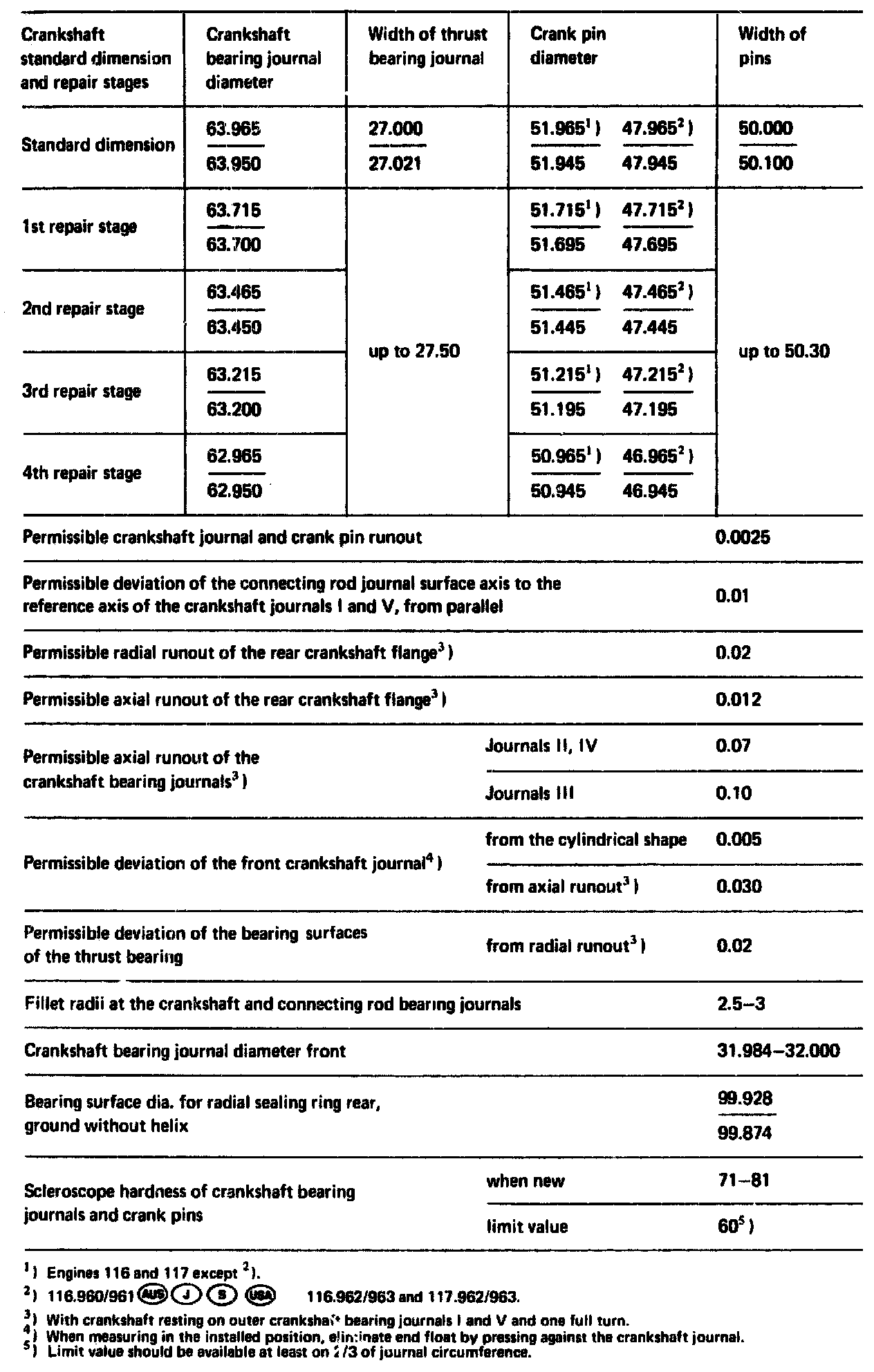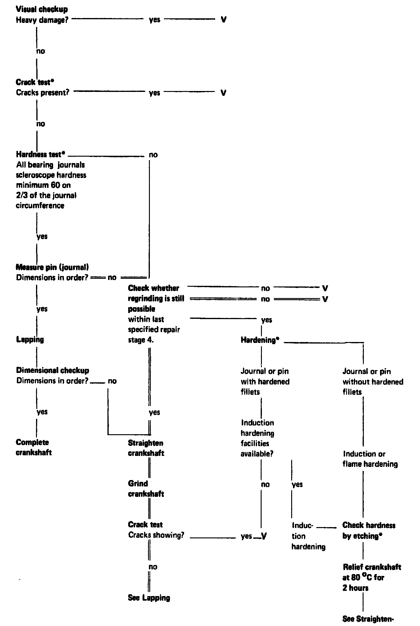 When checking and reconditioning the crankshaft proceed according to the following diagram.