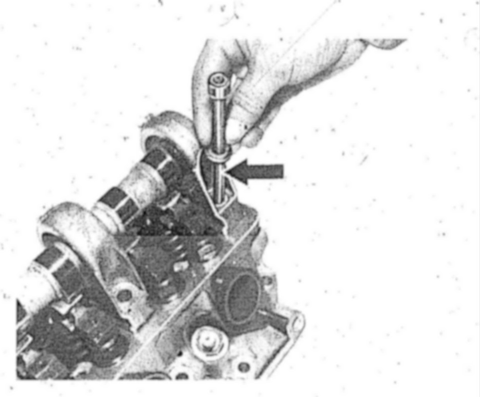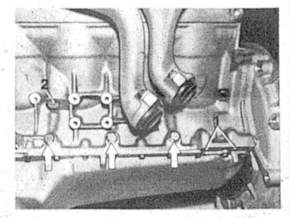 NOTE: On ET (spare part) cylinder heads without air injection, the 4 holes for the air injection to the exhaust valves (arrow) must be closed by means of tapered aluminum plugs.