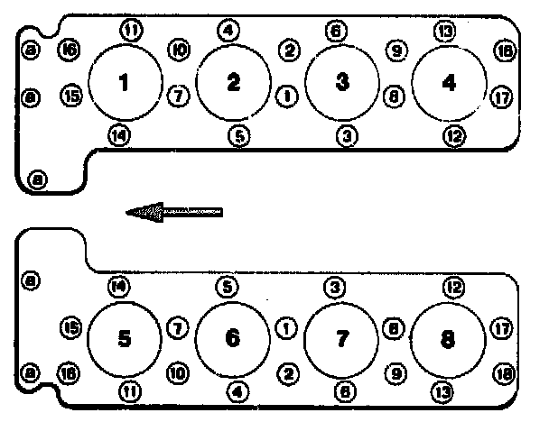 16 Unscrew cylinder head bolts in reverse order of tightening diagram.
