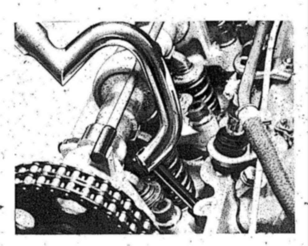 17 To remove the righthand cylinder head, push the tension rail with the timing chain towards the center of the engine so that the tension rail is not in the way.