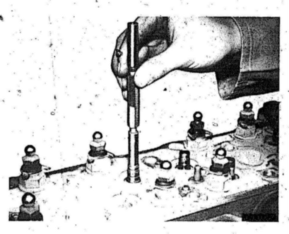 If the measuring plug cannot be inserted fully or only in part, the basic bore for the valve guide can be reamed to normal dimension for the valve guides.
