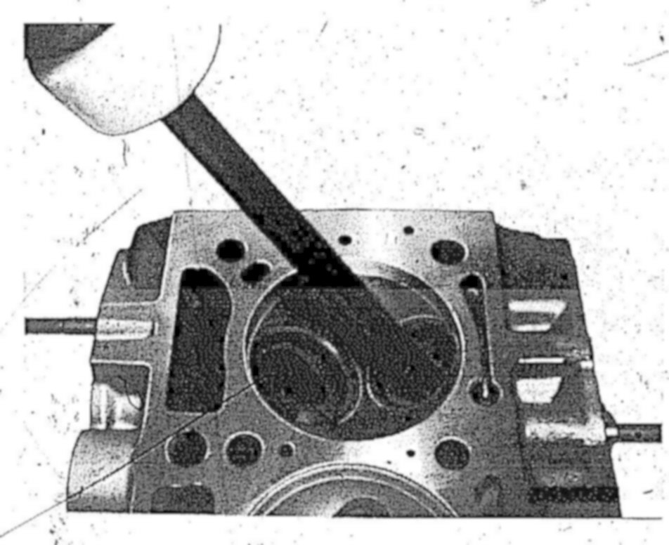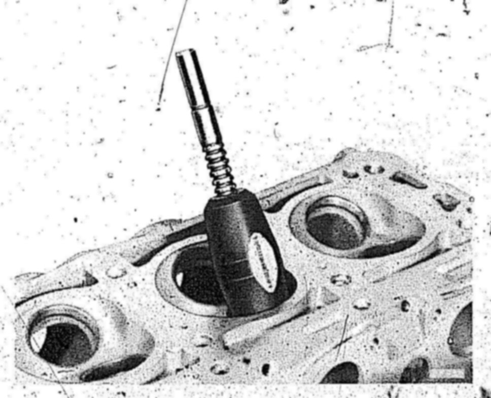 1 Knock out valve guide from combustion chamber end by means of knocking mandrel.