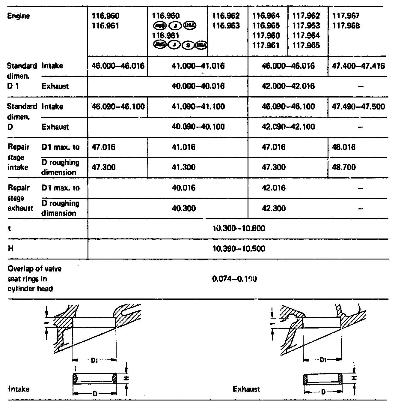 A new valve seat ring standard dimension may be used if the specified overlap is available.