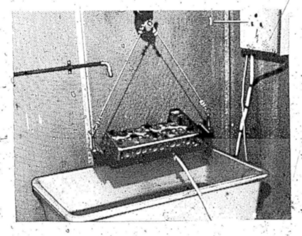 7 Heat cylinder head in water bath.