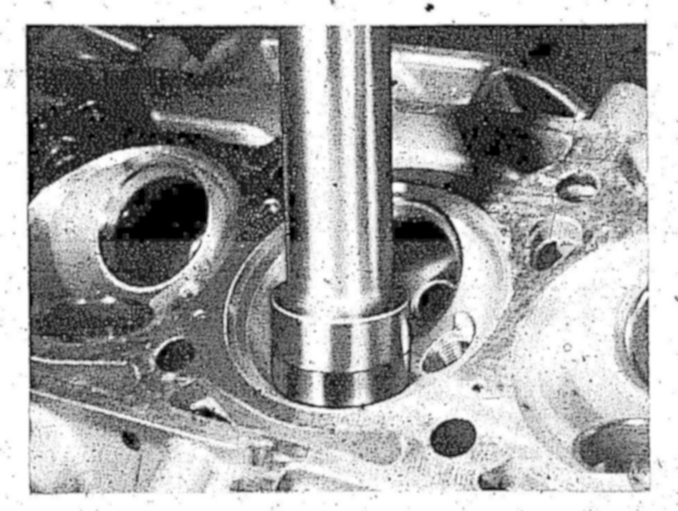 4 Machine basic bore repair stage D 1 with the valve seat ring turning tool until the bore is just clean.