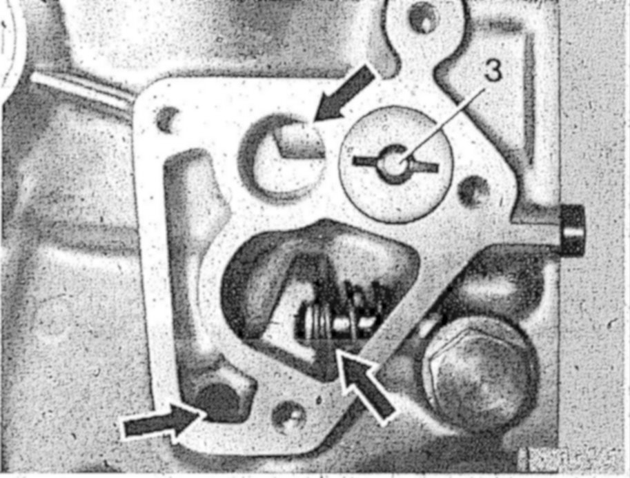 At a gauge pressure of 8 bar (up to April 1985) and of 5.5 bar (as of April 1985), the oil from the feed opening (A) shifts the piston (2) against the force of the compression spring (3).