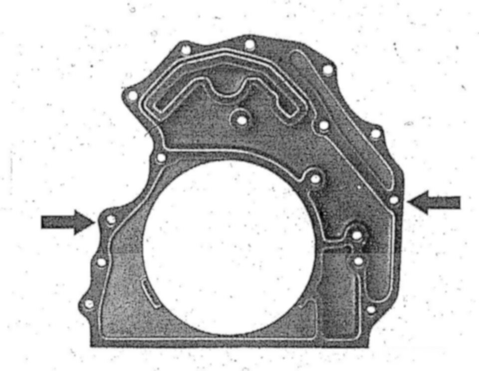 If a leak exists at the rear, first of all clean engine and spray dried surrounding area with Mercedes-Benz white contrast spray, Part No. 000 989 03 59. Support engine, run engine and determine leakage point.