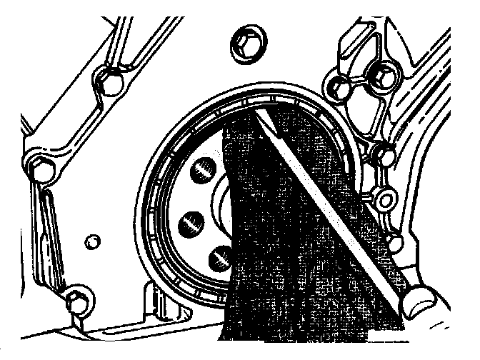 NOTE: The closing cover guides the engine oil from the main oil gallery to the two oil passages for supplying oil to the cylinder heads and is sealed to the crankcase with sealant. For this reason, the radial seal should be replaced without removing the closing cover, if possible.