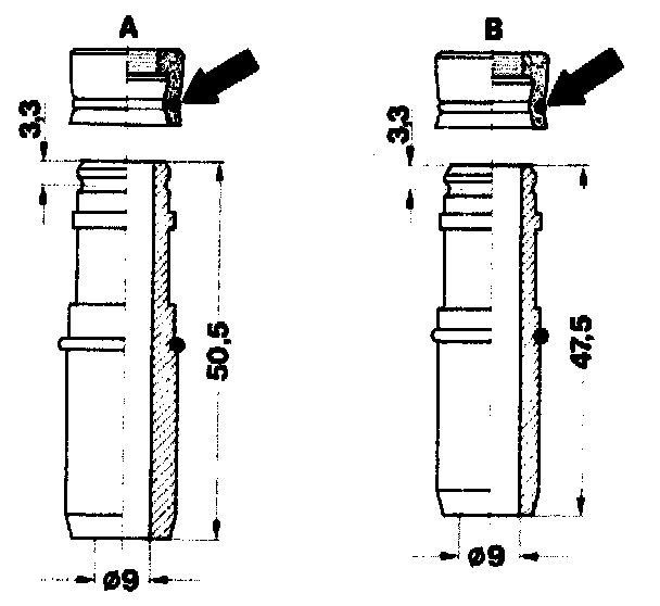 Use 2nd version only for valve guide with stop collar and with 3.3 mm retaining groove distance.