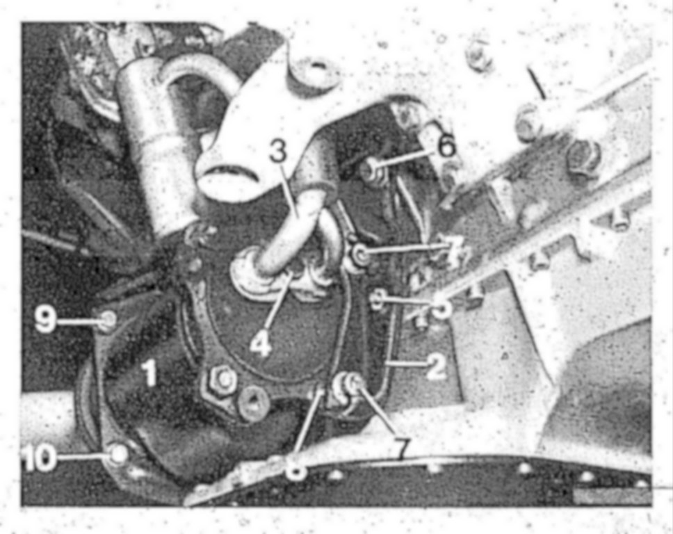 Check the carrier for distortion. All contact points must rest against the crankcase without gap. This condition must be verified before mounting the carrier. The bolts must be tightened in the following sequence:
