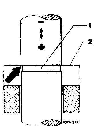 Select the thrust piece so that when checking the basic adjustment with the test gauge 100 589 04 23 00, the measuring edge 2 is positioned at the upper edge of the red measuring groove 1 (see arrow).