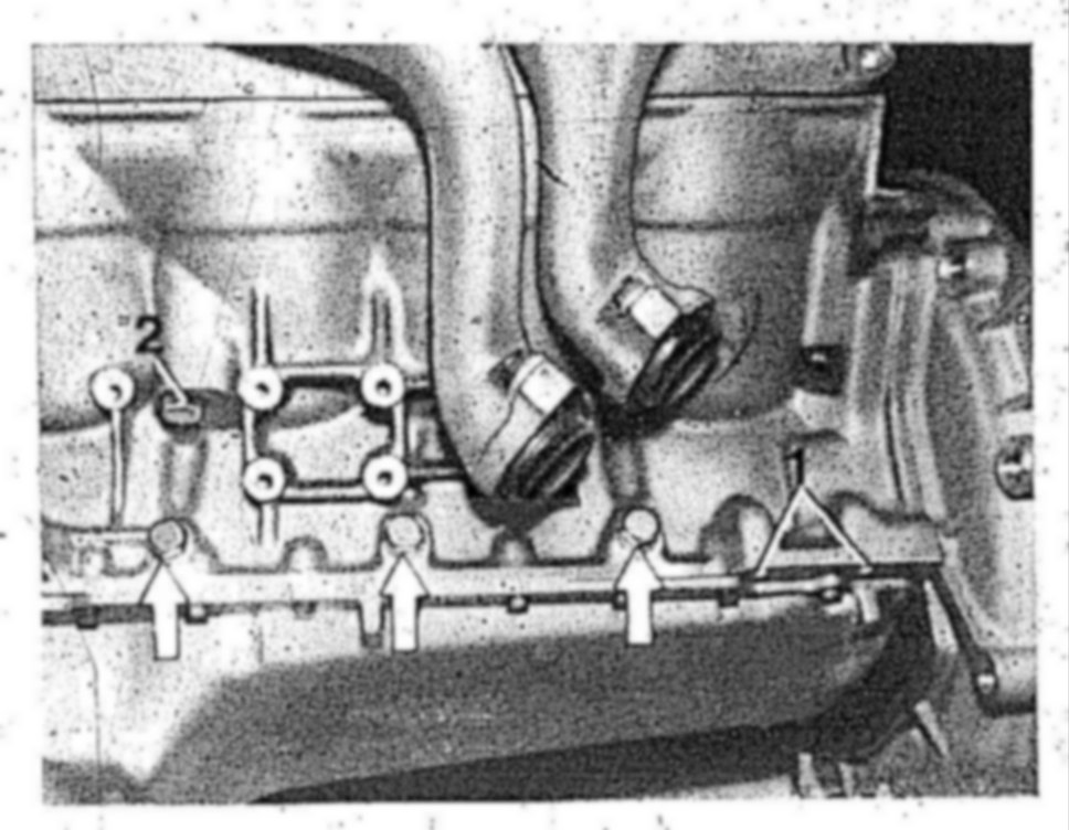 2 On vehicles with air conditioning or automatic climate control, these should be drained and hoses disconnected at the pipe pair (arrow).