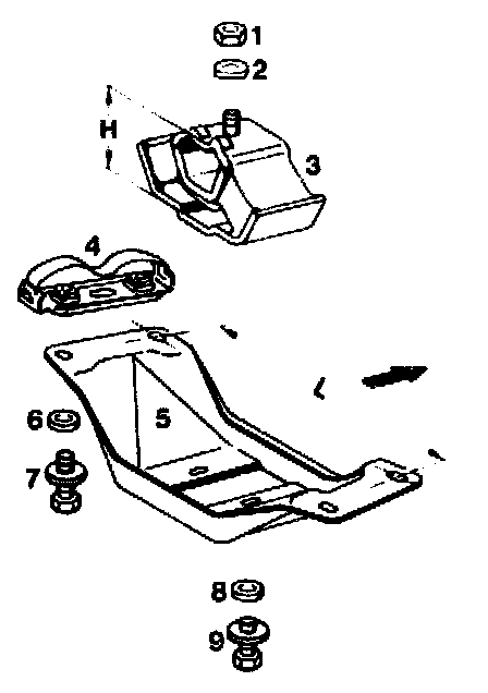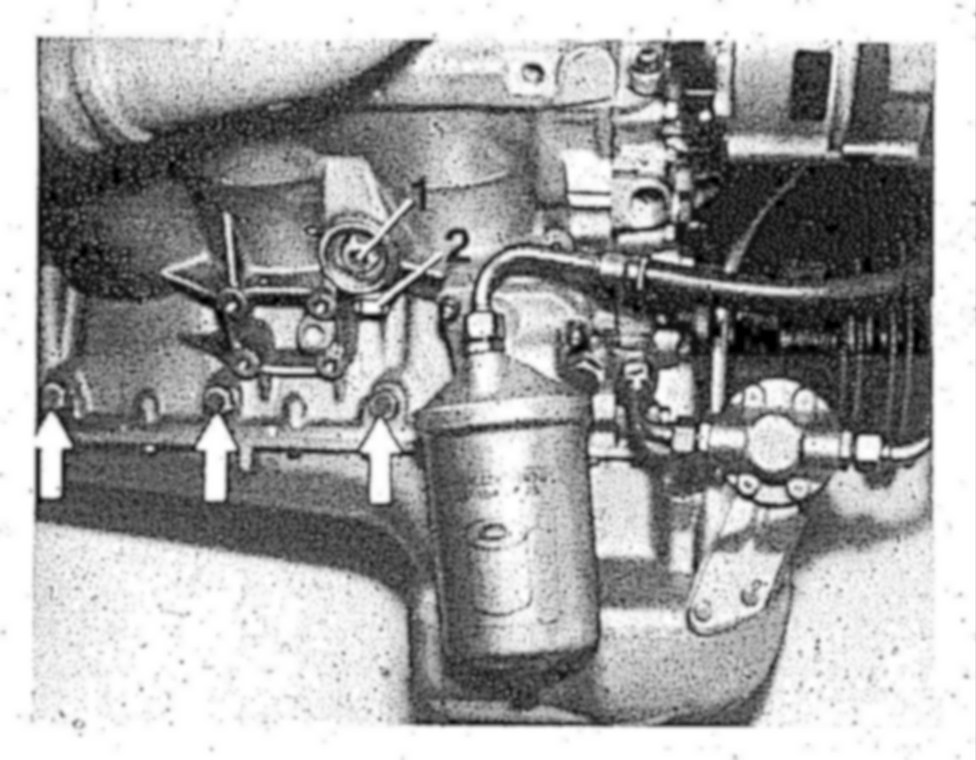 11 Unscrew attaching screws (arrow) at left and right of engine mount.