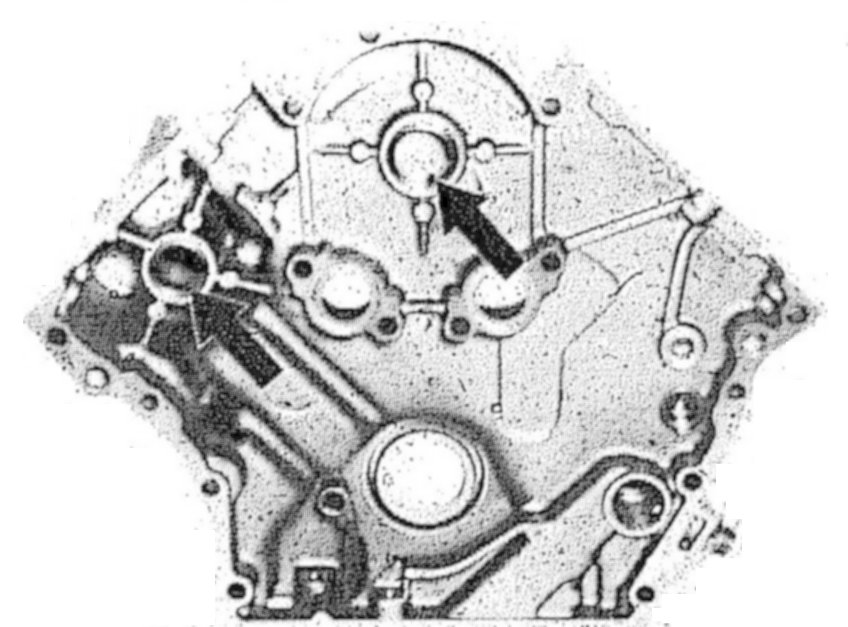NOTE: The bearing bushes for the distributor drive are no longer fitted in the crankcase as of December 1984 and in the timing case cover as of March 1985. Crankcases and timing case covers with and without bearing bushes can be installed alternatively.