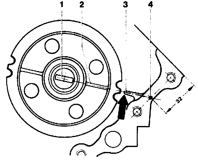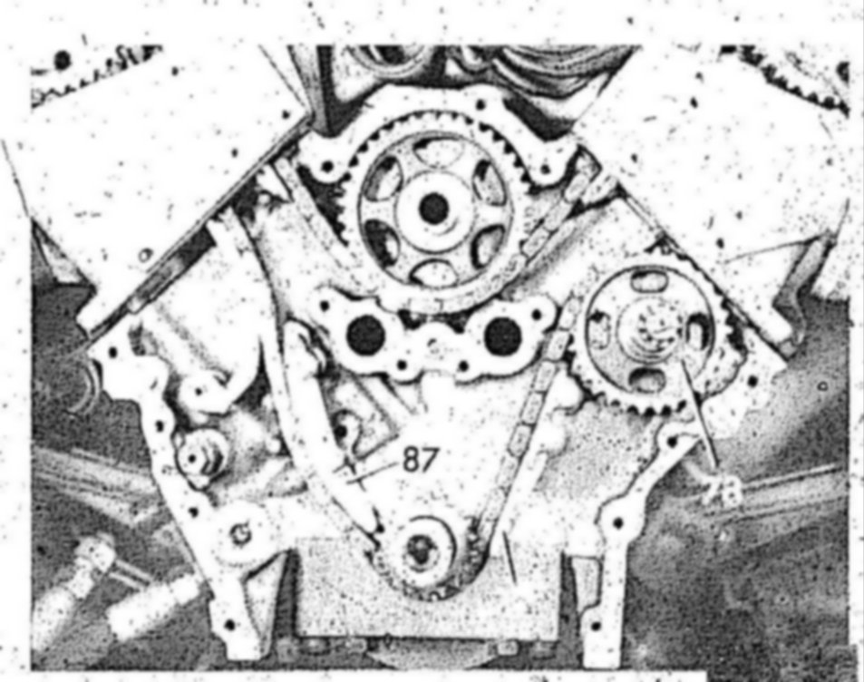 3 Slacken timing chain on intermediate sprocket by turning left-hand camshaft.