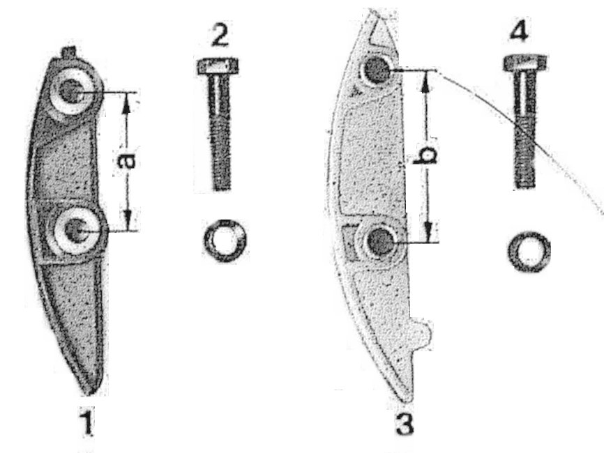 5 When installing, pay attention to position of guide rail. install oval hole facing down. The bearing pins differ from those of the cast iron engines.