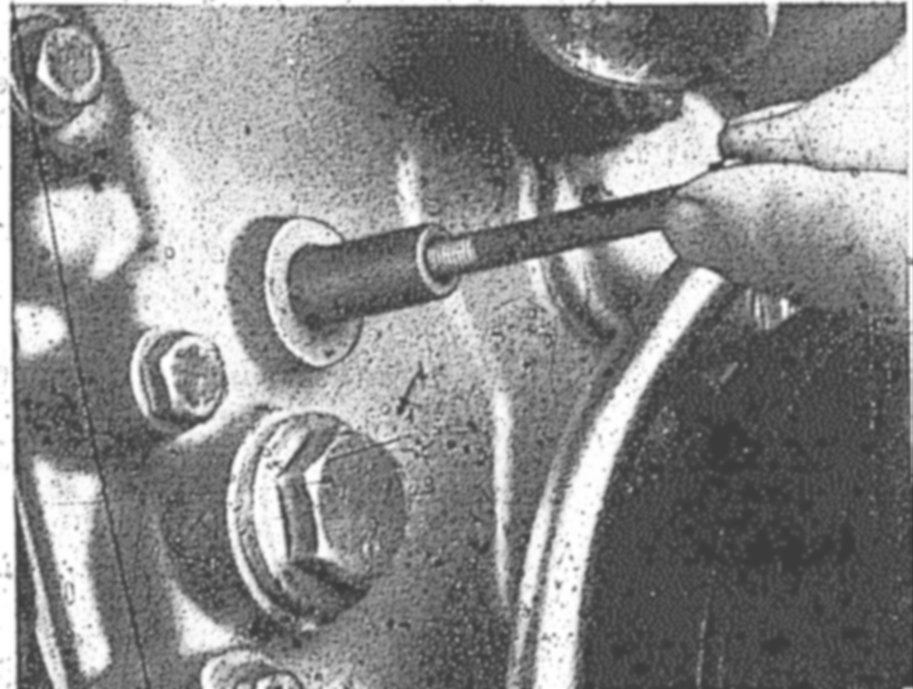 NOTE: The bearing pin is hollow (inner dia. 8.8 mm) and a floating fit (light sliding fit) in the crankcase and timing case cover.
