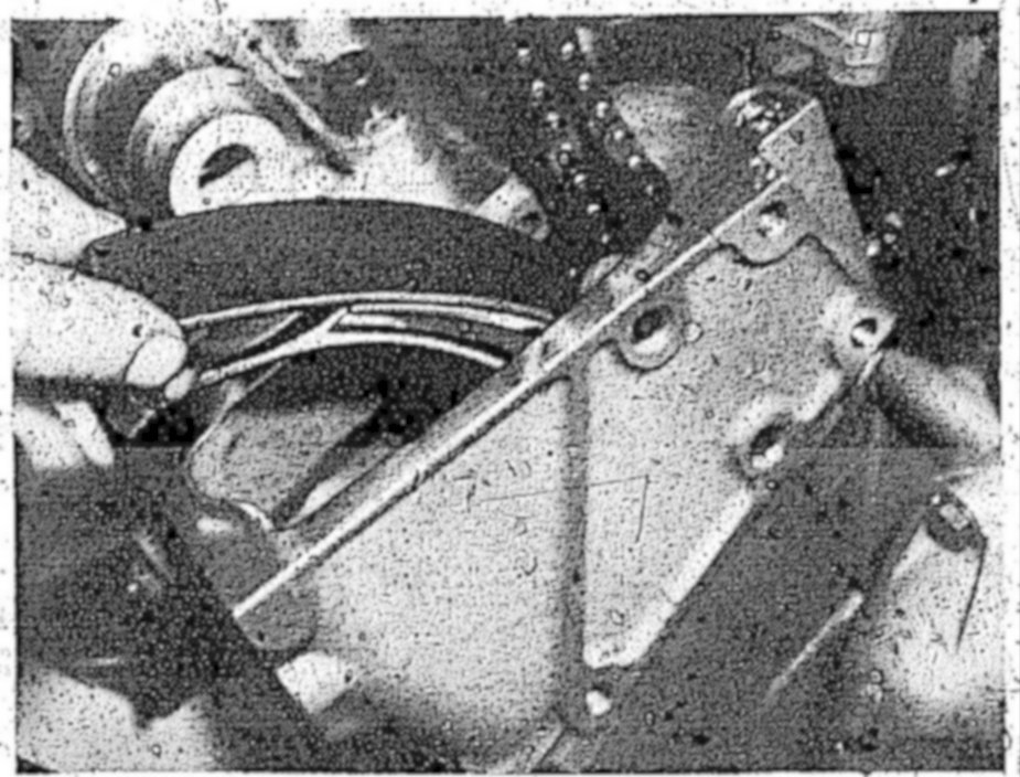 8 Insert tension rail between timing case cover and timing chain.