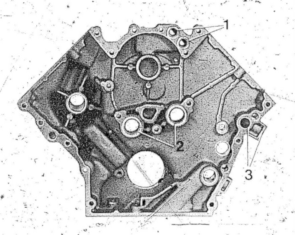Two through-holes each for the heater return (1) and the coolant supply (2) are arranged on the timing case cover. These are sealed at the crankcase by means of rubber sealing rings.