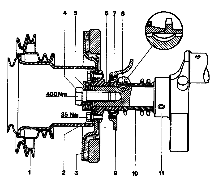 7 Remove V-belt pulley together with vibration damper and hub. Service and Repair