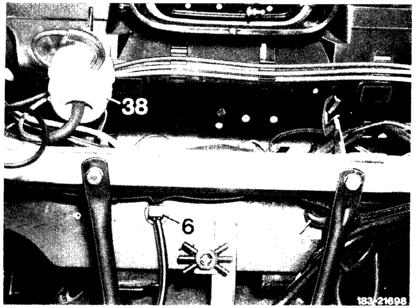 4. Mount instrument panel, then remove wedge and plug vacuum lines, red-white at bottom and red-light blue in center, to vacuum element.