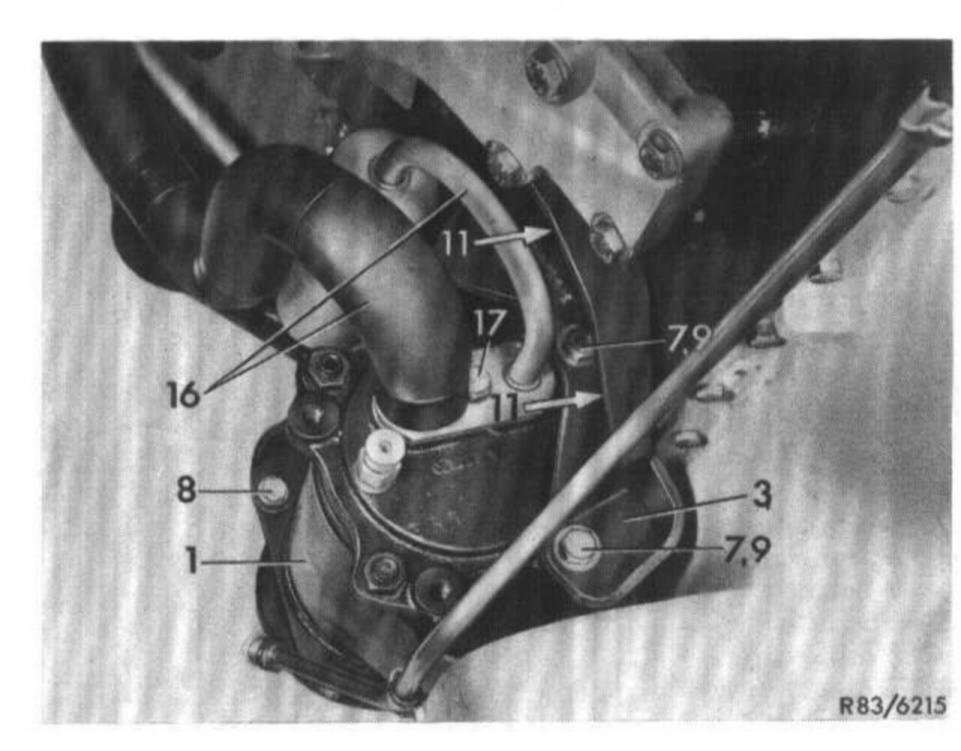 23 Screw pipe line (16) (with parts item 20) to carrier for pressure oil pump or cylinder head.