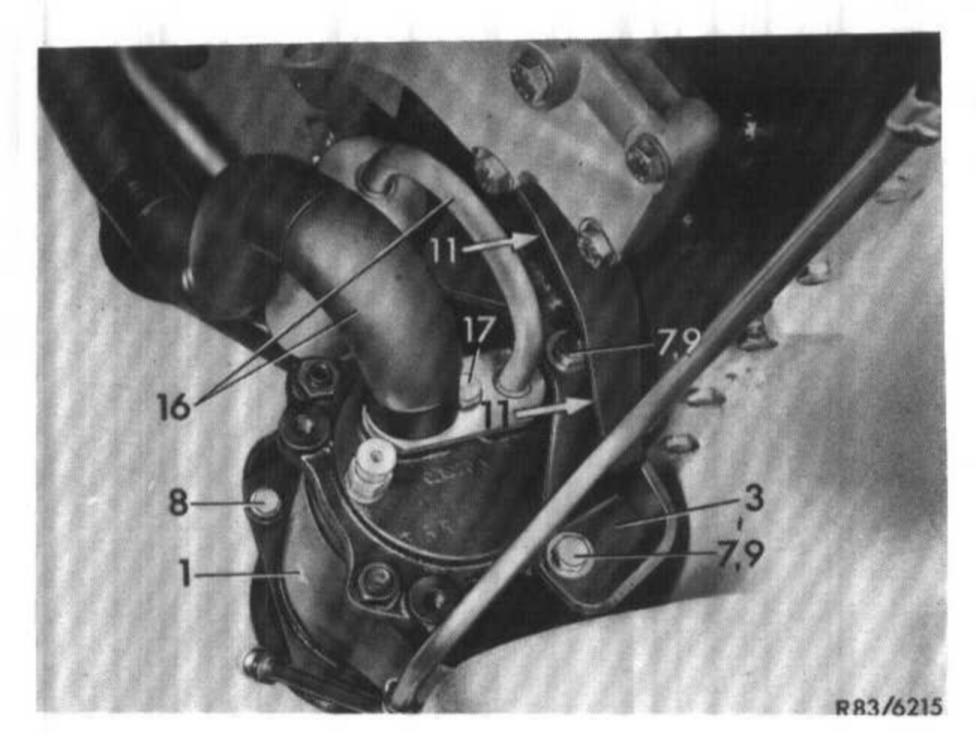 15 If the pipe line (16) requires removal, turn pipe line by 180° and remove in downward position.
