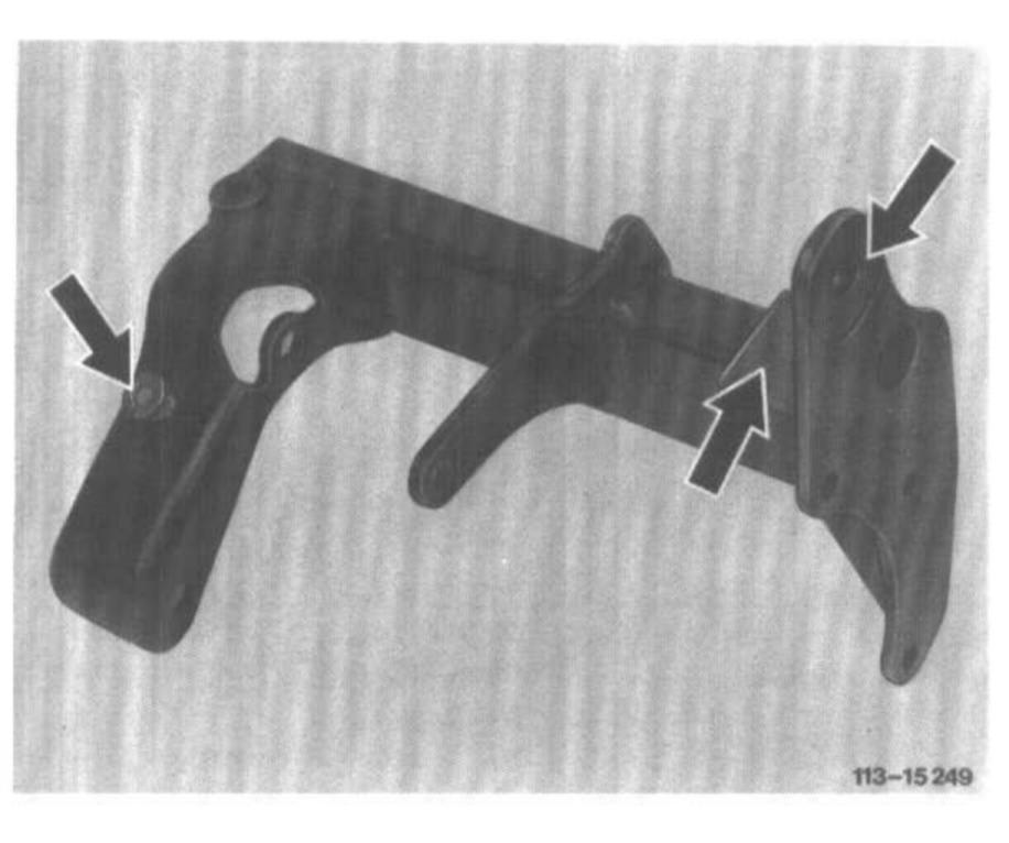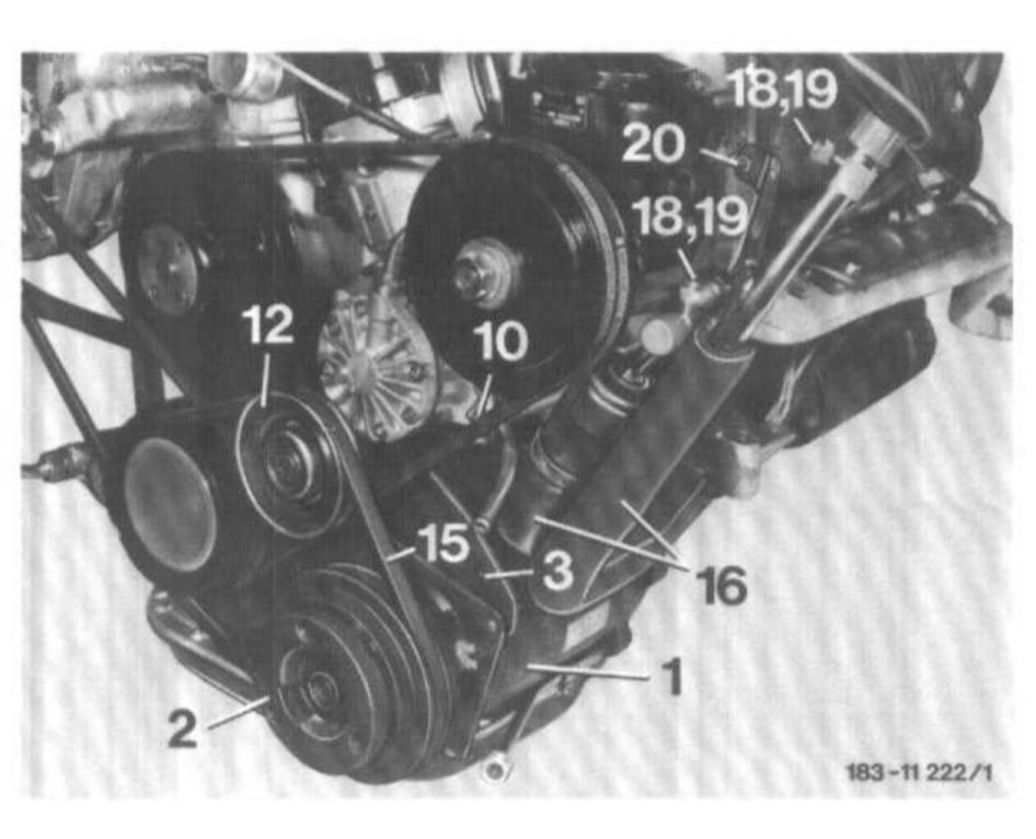 20 Under 3rd version (vehicles 107, 024/044) a disc (part no.169902440) must be added in-between engine and carrier of grey iron engines. On light-alloy engine (116 and 117) the carrier for the refrigerant compressor is mounted without a disc.