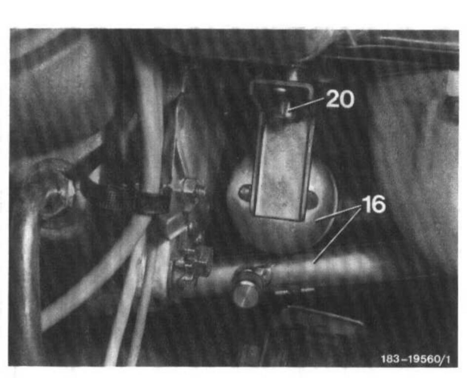 6 Unscrew screw (20) on carrier for pressure oil pump.