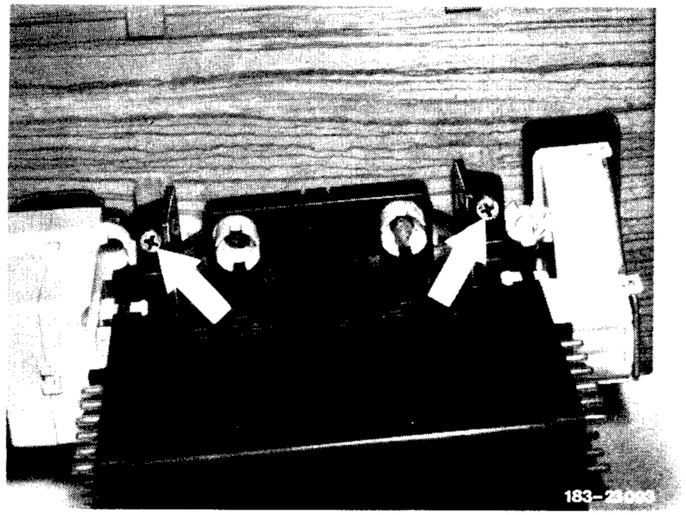3. Unscrew both screws at the left and right (arrow) and remove control unit from wooden panelling.