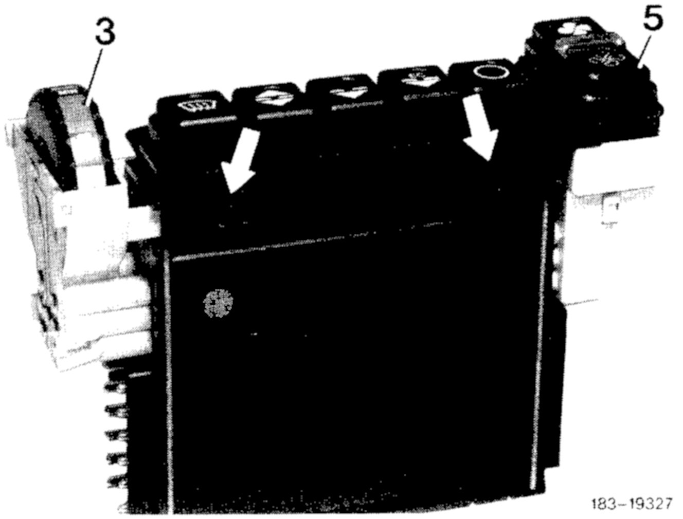 1. Press blower switch (5) with clip (64) against control unit, mount plastic cover. Put back push- buttons under slight pressure with a rotating motion (pay attention to sequence and position of symbols).