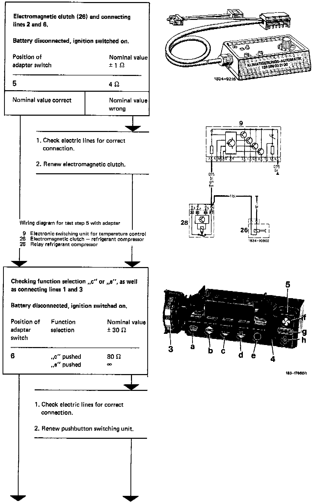 CHECKING FUNCTION SELECTION "c" or "e", AS WELL AS CONNECTING LINES 1 AND 3: