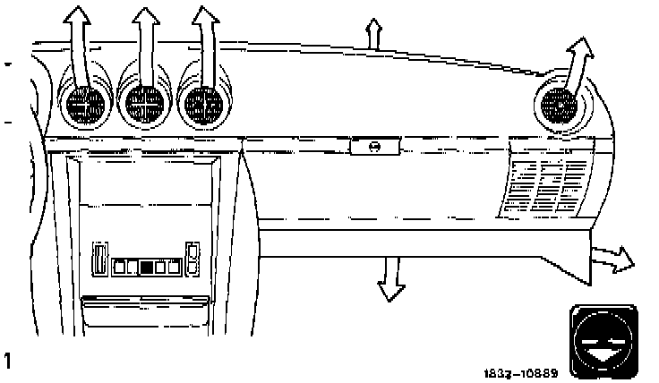 - Establish condition "mode change" (overlap) by turning temperature dial slowly in upward or downward direction until legroom flaps and center nozzles are open.