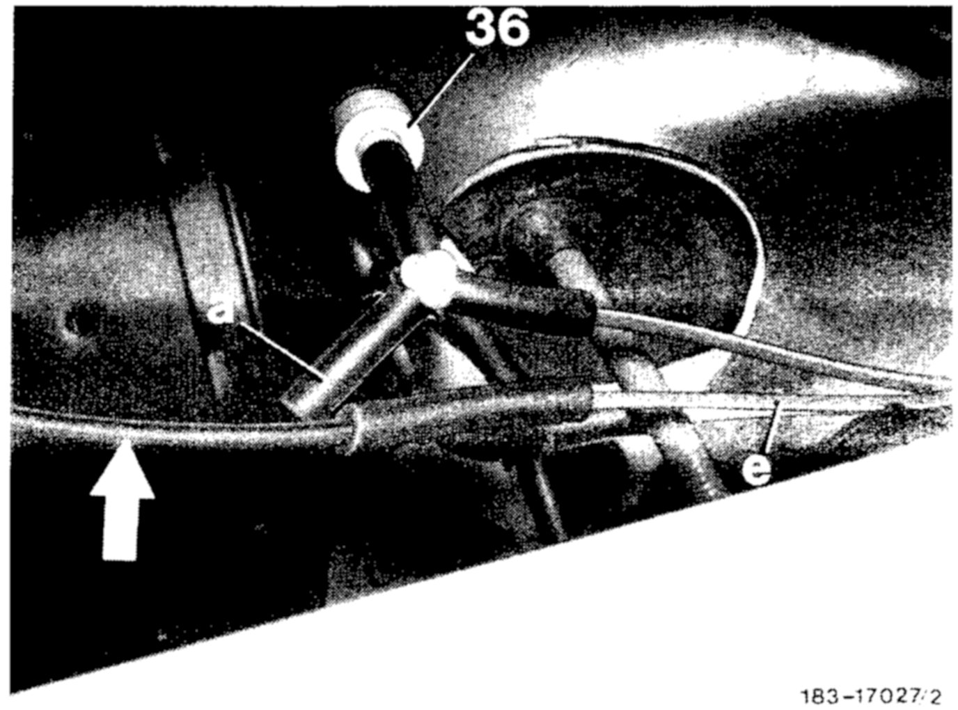 2. Pull red/green vacuum line out of 3-point distributor (a), connect tester (refer to arrow), evacuate (approx. 600 mbar) and read pressure gauge.