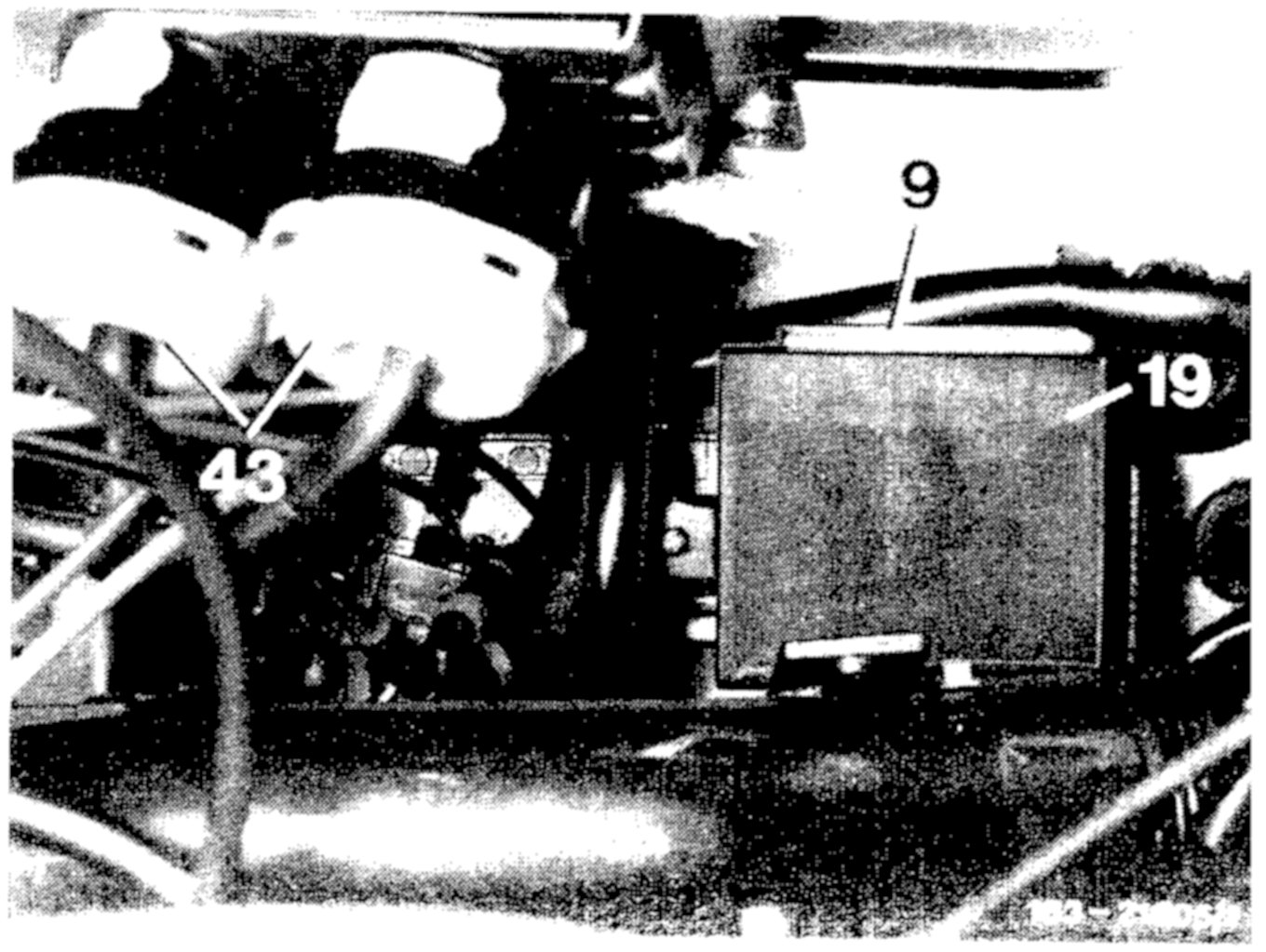 TESTING VACUUM CIRCUIT IV:Vacuum Elements (42) and (43) for Main Air Flaps with dark red vacuum line.